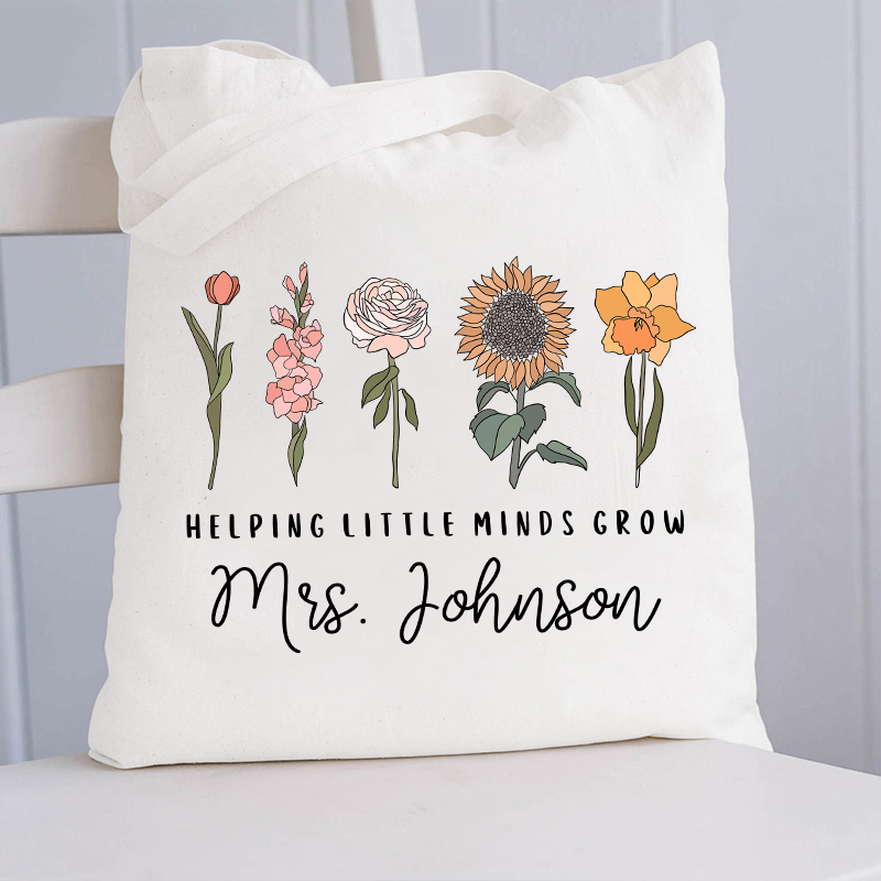 Personalized Helping Little Minds Grow Teacher Tote Bag