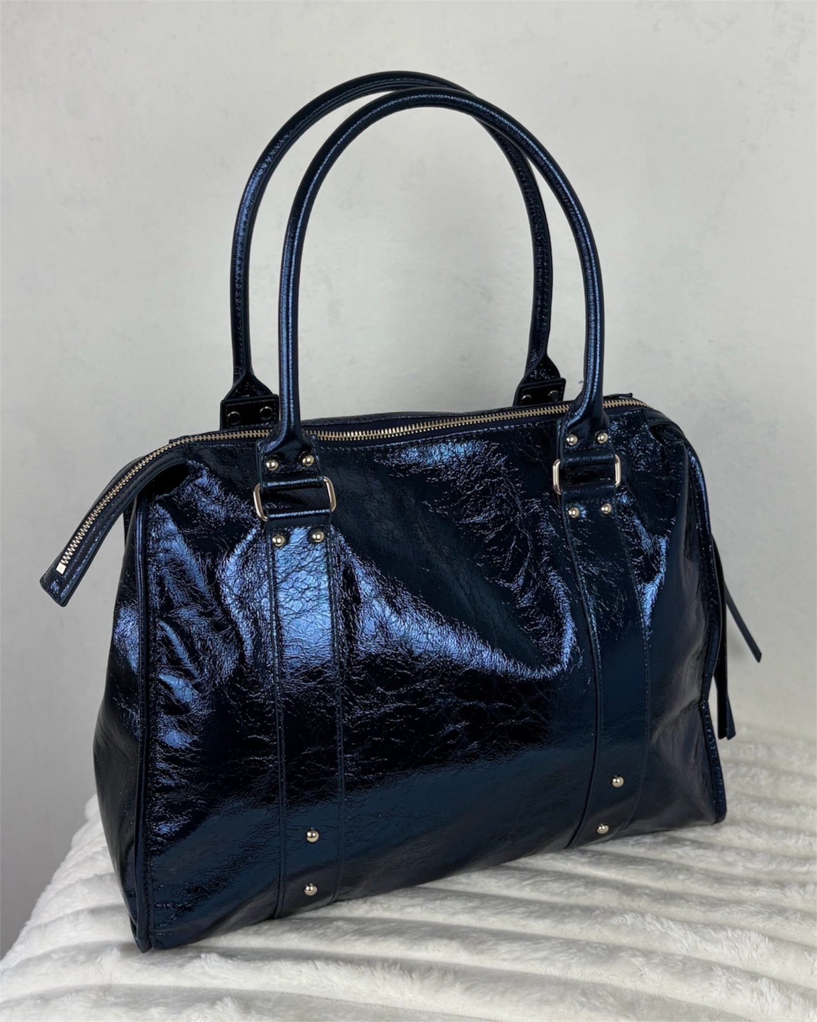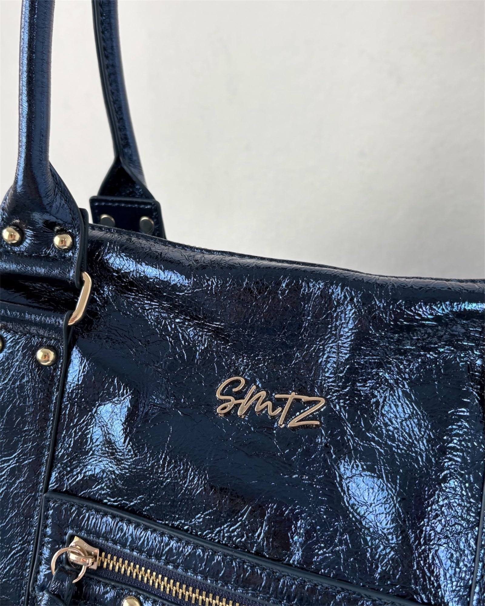 Conçu en simili cuir irisé, ce sac structure vos looks avec élégance. Son format généreux permet d’emporter un ordinateur portable, plusieurs cahiers ou manuels, ainsi que tous vos essentiels du quotidien.