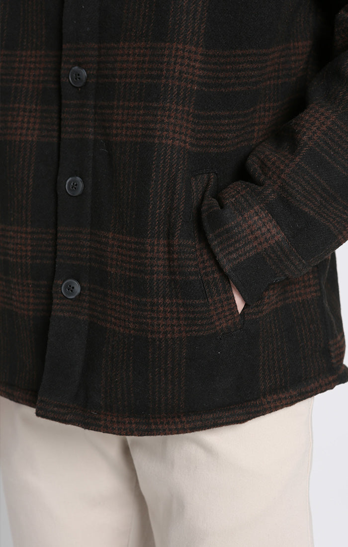 A unique wool blend CPO Jacket with sherpa lining and side pockets.�