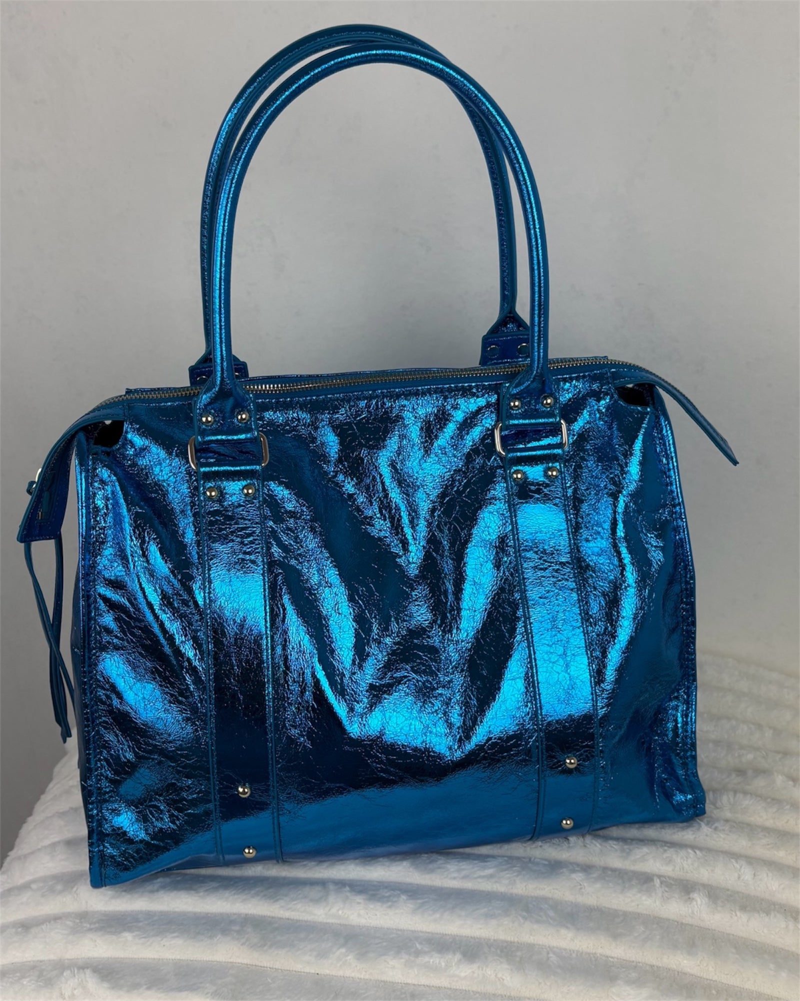 Conçu en simili cuir irisé, ce sac structure vos looks avec élégance. Son format généreux permet d’emporter un ordinateur portable, plusieurs cahiers ou manuels, ainsi que tous vos essentiels du quotidien.