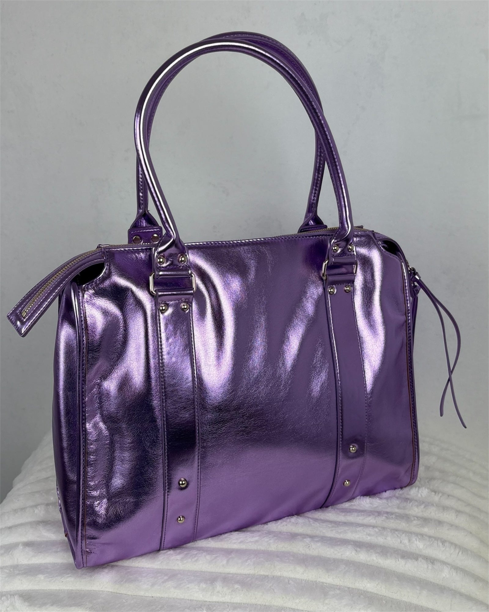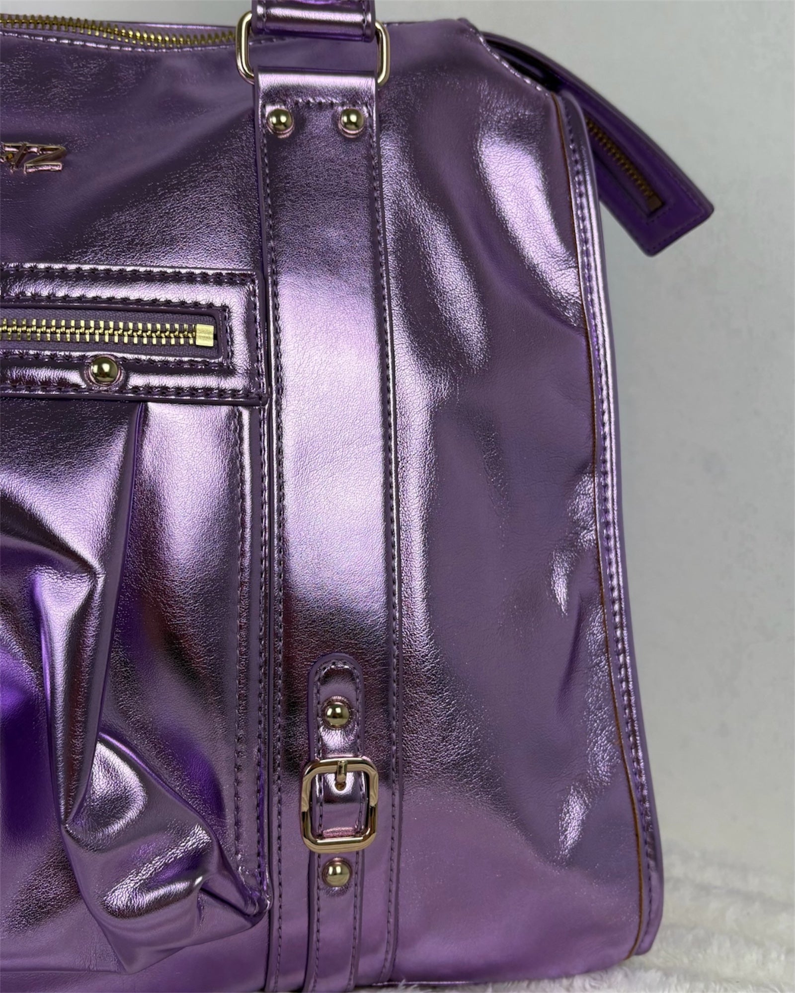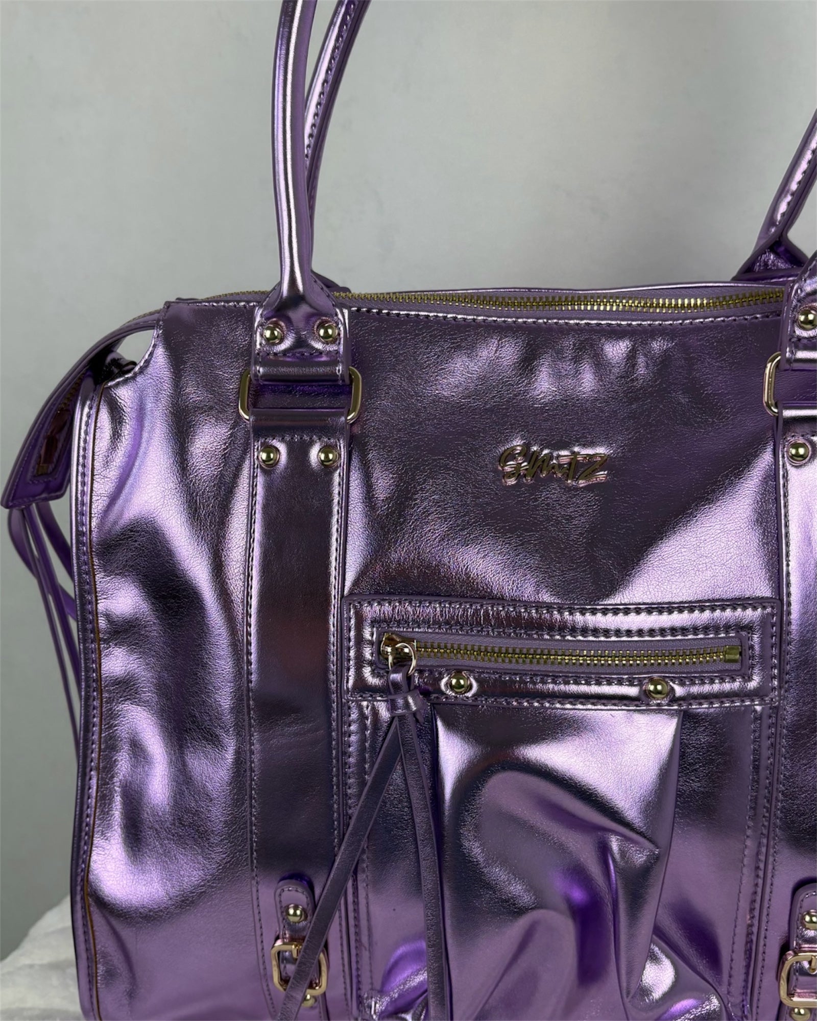 Conçu en simili cuir métallisé effet miroir, il se distingue par son éclat sophistiqué et lumineux. Son format généreux permet d’emporter un ordinateur portable, plusieurs cahiers ou manuels, ainsi que tous vos essentiels du quotidien.