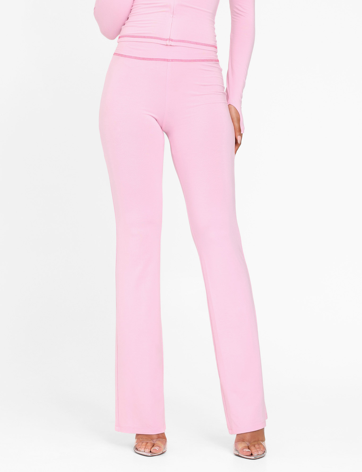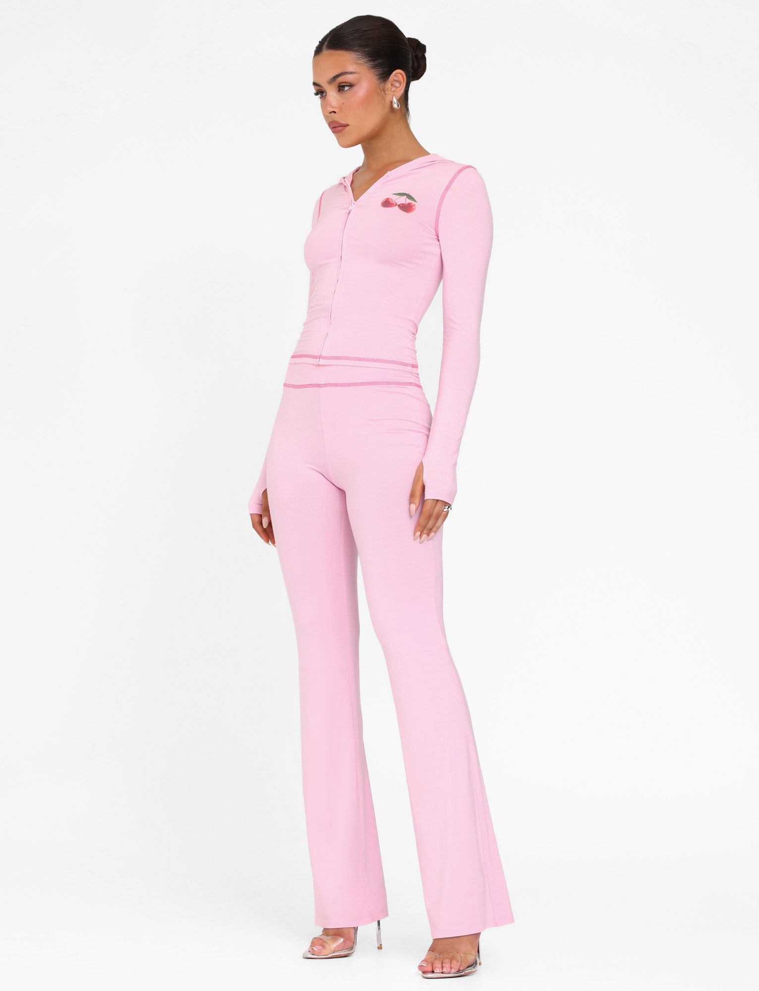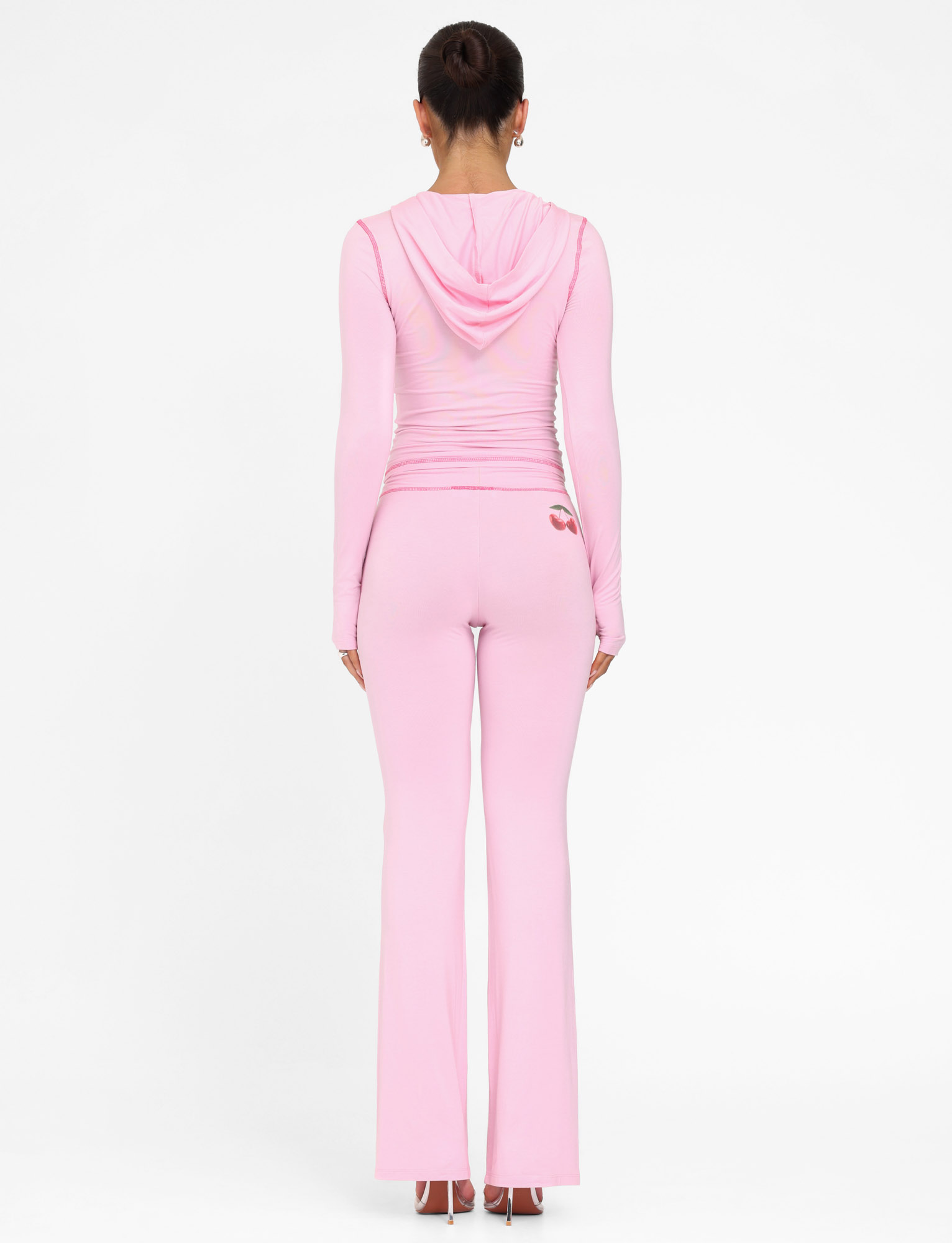 Low-rise trackpant in soft pink luxe jerseyWide, elastic waistband for a comfortable, stretchy fit Featuring cherry placement print on the bum Contrast stitching detail around the waistband and ankles Pull-on construction