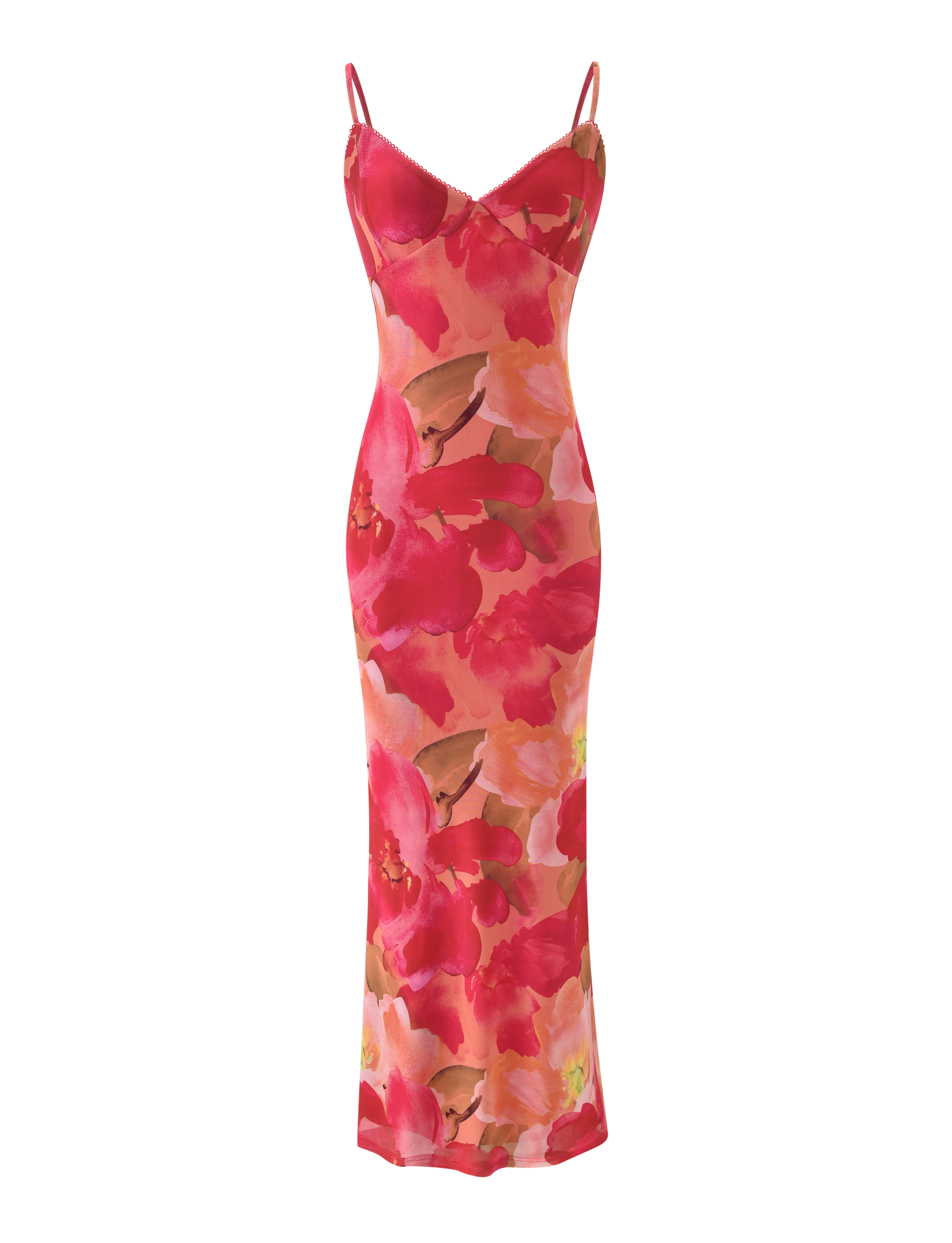 - V-neckline with adjustable spaghetti shoulder straps
