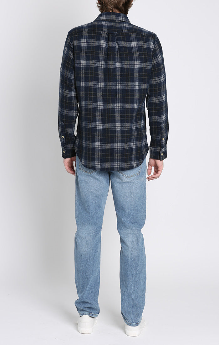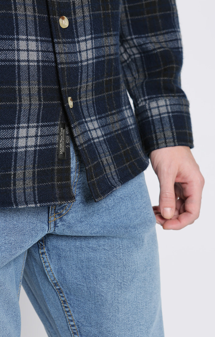 A Premium Midweight Stretch Flannel Overshirt. Crafted from durable, stretch-enhanced fabric, this four-pocket design combines rugged functionality with a modern fit, making it the perfect layer.