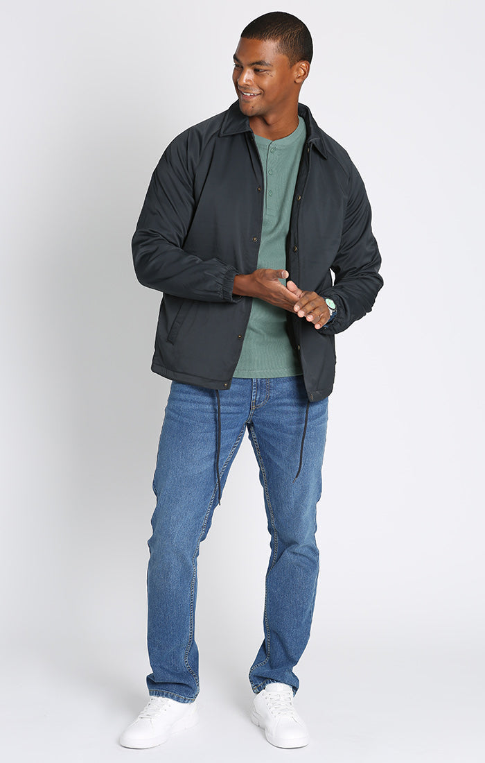 A new modern performance flushing coach jacket with added stretch for extra mobility.