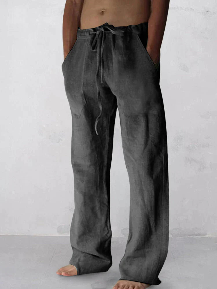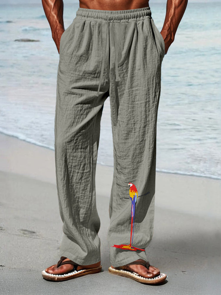Men's Breathable Linen Embroidered Logo Loose Holiday Shorts