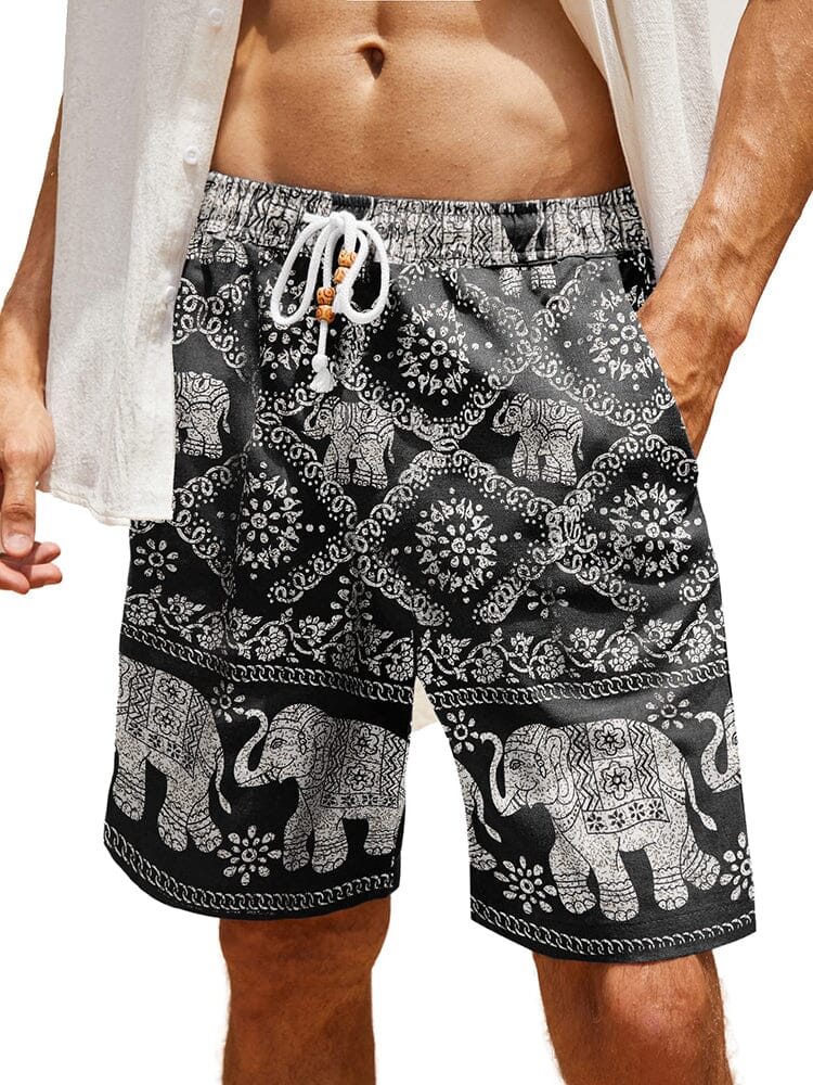 Casual Elastic Waist Linen Holiday Shorts (US Only)