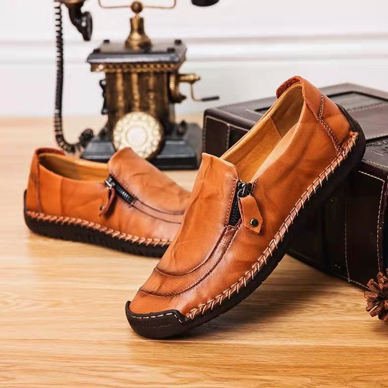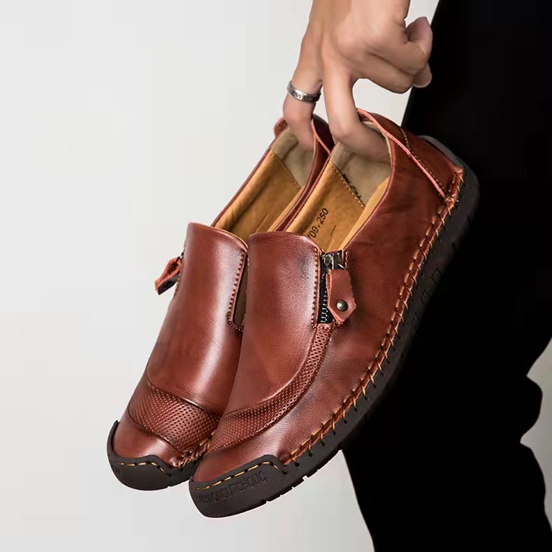 - [HIGH QUALITY] 👞 : The upper is made of premium leather with clear texture and used soft and double handmade sewing so that the hand stitching zipper shoes can be durable and firm.